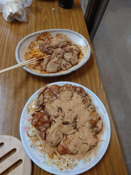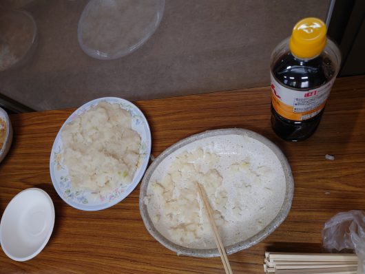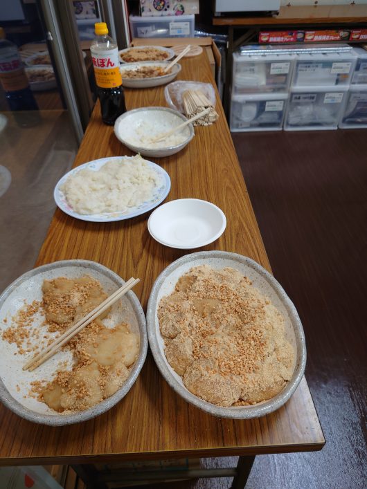 ぜんざいの中にきな粉餅を入れて食べたり、各自アレンジして食べていました。